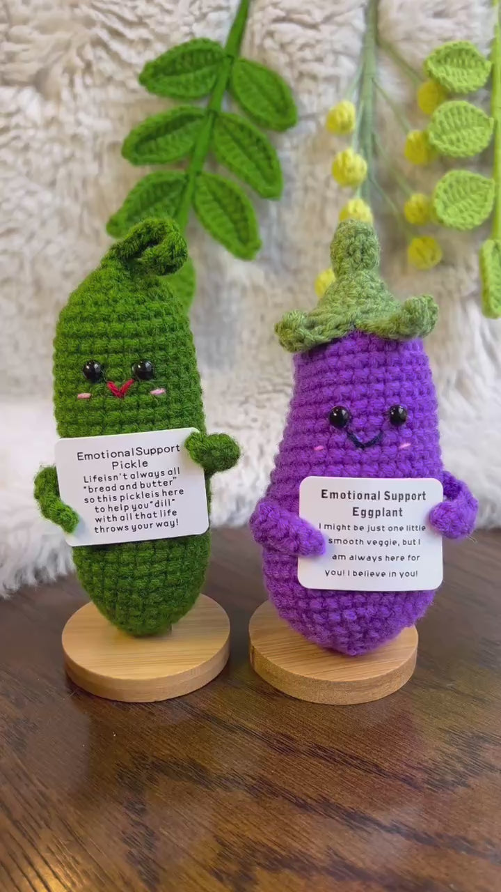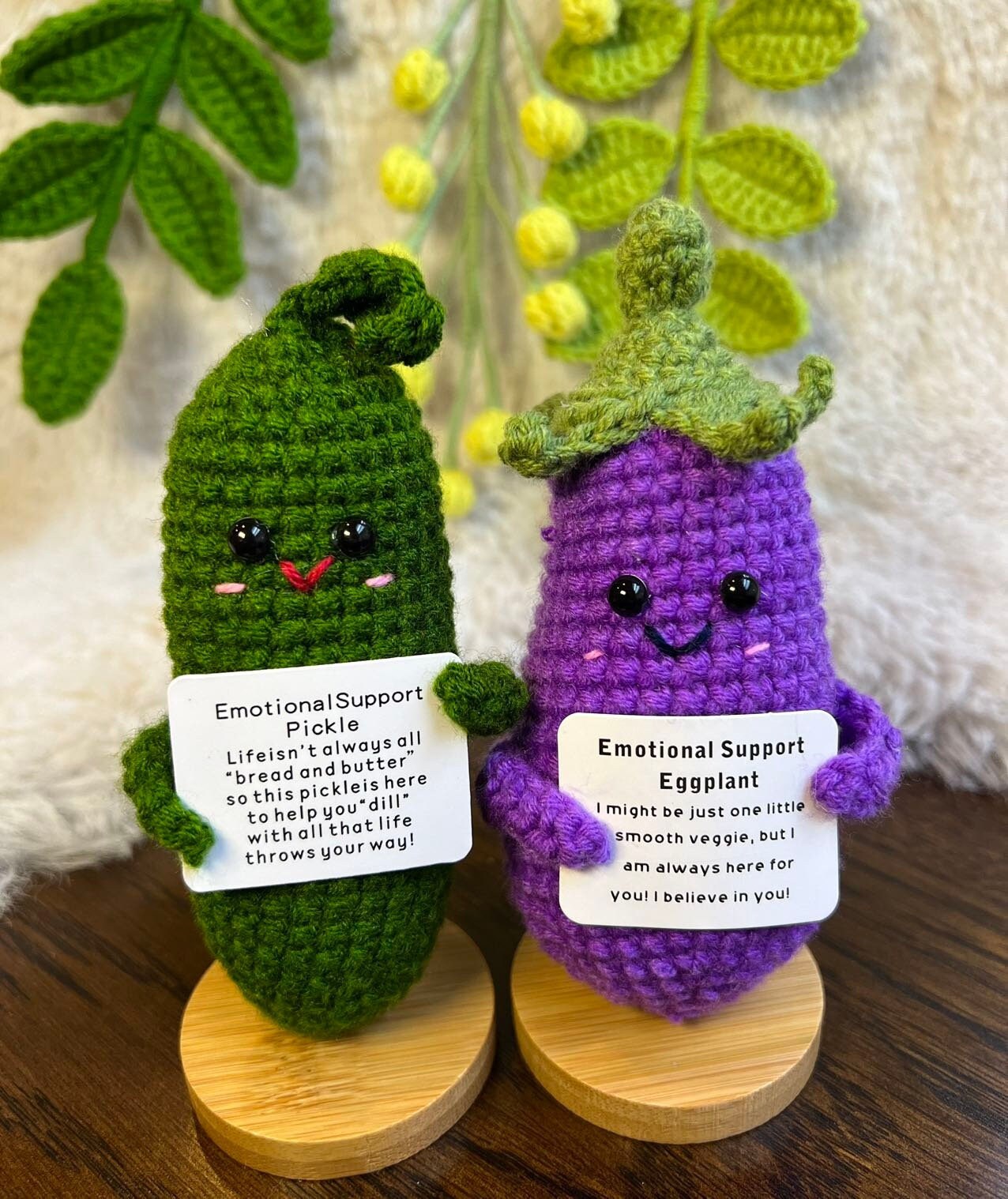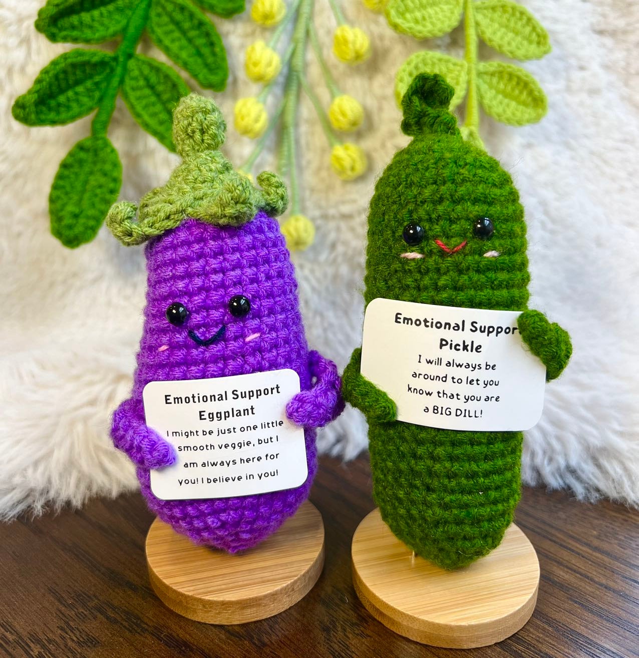 Handmade Crochet mini caring pickle+Emotional Support eggplant Gift Set-Positive Affirmation gift for Family/Friends-Xmas Gift