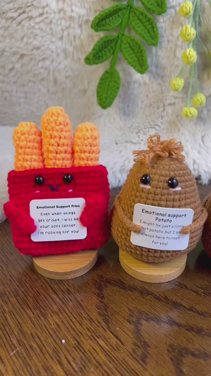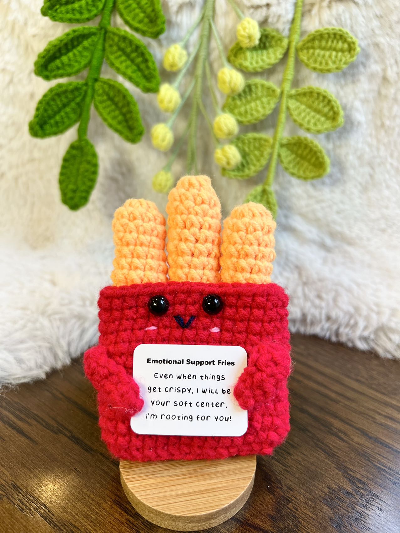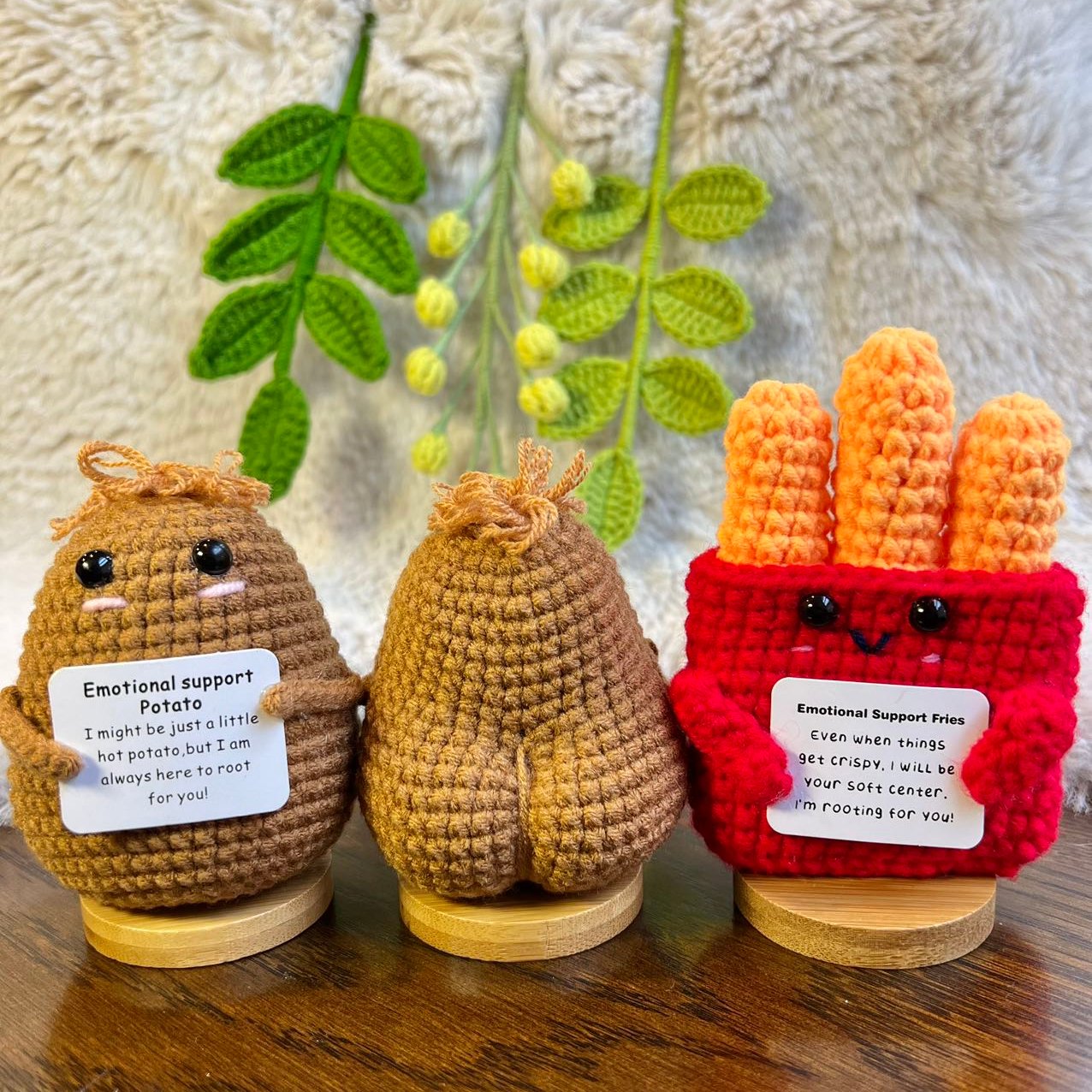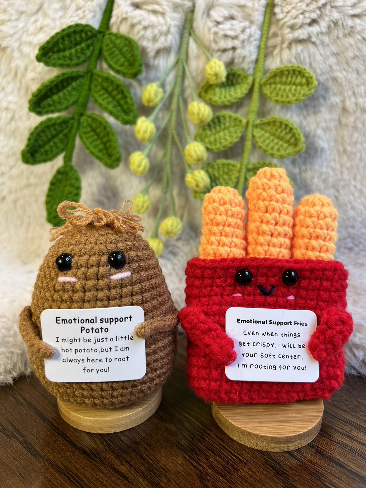 Handmade Crochet positive potato+Emotional Support fries Gift Set-mini caring Affirmation gift for Coworker, Family/Friends-Xmas Gift