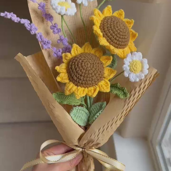 Sunflower with daisy lavender | Crochet flower bouquet, Daisy, Lavender, Birthday gift for her