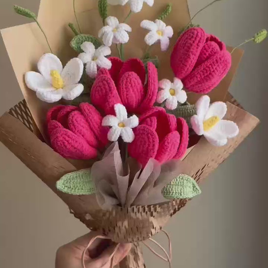 Tulip fairy | Crochet Flower Bouquet: Handmade Dahlia Tulip peony