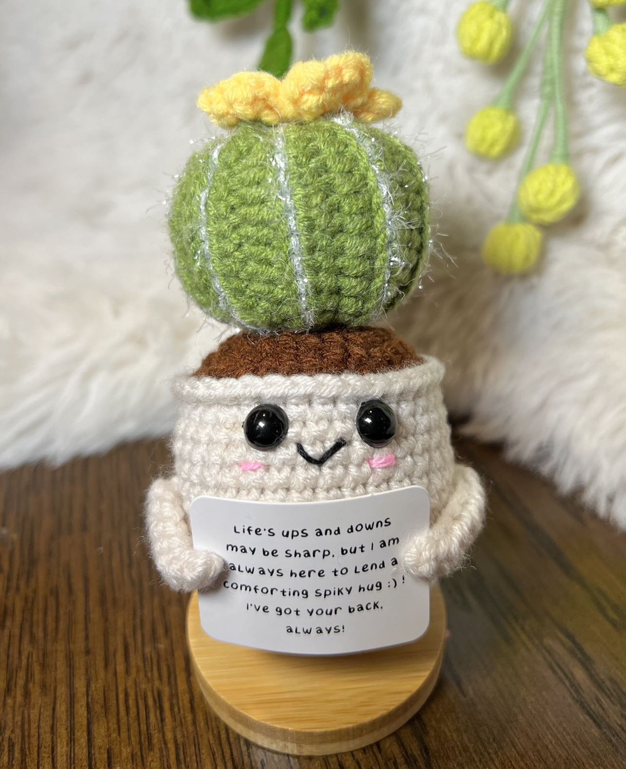 Unique Handmade Crochet positive veggie +Emotional Support cactus, Christmas gift, Birthday, Mom, gift for her, Coworker, Family/Friends