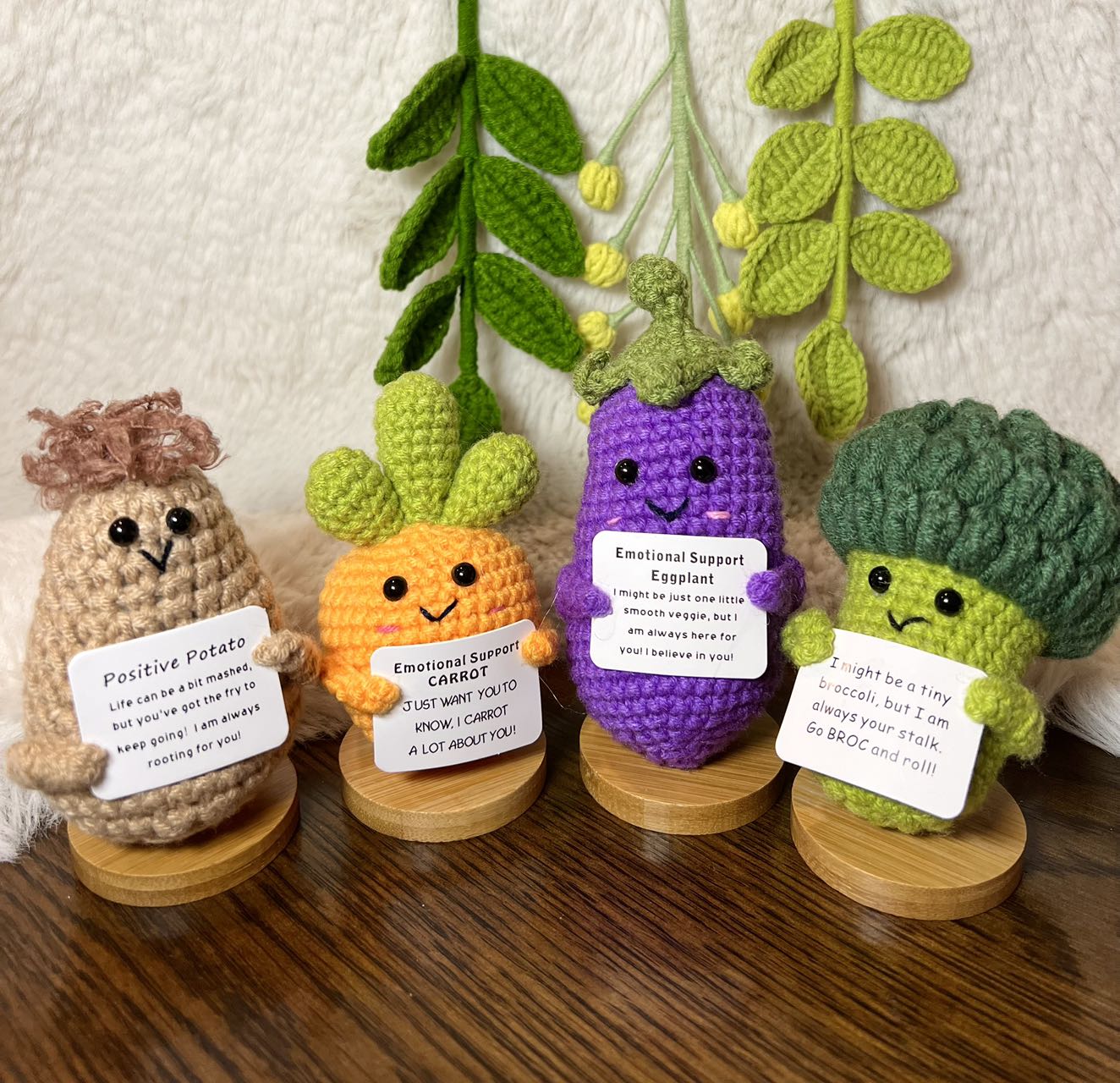 Unique Handmade Crochet positive veggie+Emotional Support carrot potato, broccoli, Christmas, Birthday, gift for her,Coworker,Family/Friends
